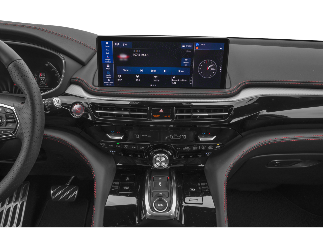 - Radio: Bang & Olufsen Premium Audio System -inc: 19-speakers, 12.3" color touchscreen, Wi-Fi hotspot capability, AcuraLink Real-Time Traffic w/street and freeway conditions, Traffic Rerouting, natural language voice recognition, AcuraLink connected services, AcuraLink security and remote services (3 years), wireless Apple CarPlay and Android Auto compatibility, Alexa built-in, Google built-in, Bluetooth® HandsFreeLink wireless telephone interface, HD Radio, USB audio interface, Bluetooth® streaming audio and Speed-Sensitive Volume Compensation (SVC)