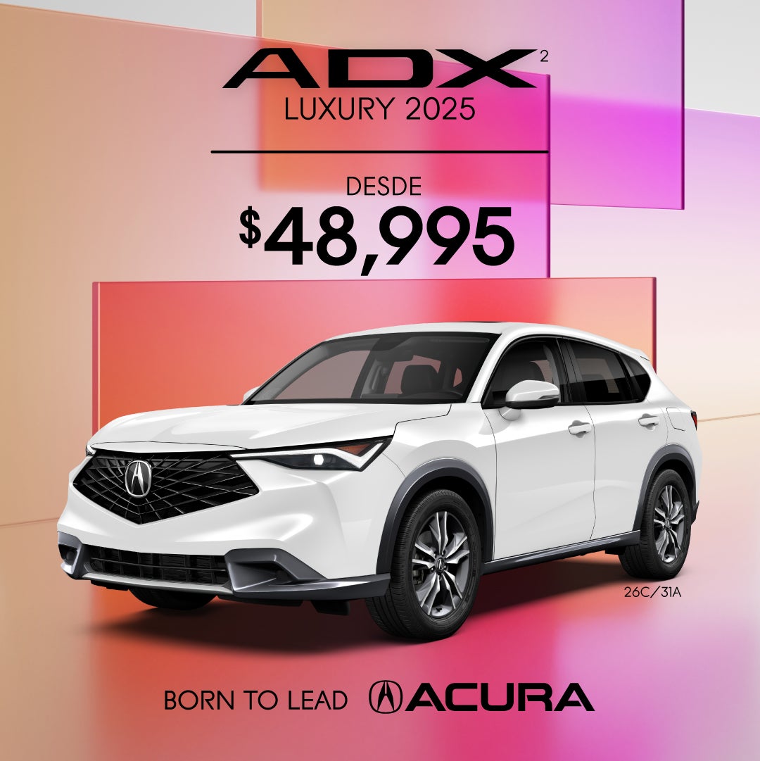 *Acura Platinum Program aplica a todos los modelos nuevos de Acura, durante la garantía básica de 4 años o 50,000 millas, lo primero que ocurra. (1) Bono de $2,000 aplica a todos los modelos RDX 2025. Ejemplo: RDX Technology 2025 modelo TC2H5, con precio regular de $68,168, menos bono de $2,000, precio especial de $66,168. (2) Acura Integra 2024 modelo DE4H2RJW : Precio regular $49,790. Bono de $5,890. Precio especial desde: $43,900. (3) Acura RDX A-SPEC 2025 modelo TC2H6SKNW Precio regular $72,690. Bono de $2,790. Precio especial $69,900. (4) Acura MDX Luxury 2025 Modelo YD9H3SJNW : Precio regular $76,987. Bono de $6,988. Precio especial $69,999. (5) Acura ADX Luxury 2025. Precio de Venta: $54,900. **Cobertura de por vida en el powertrain (motor, transmisión y diferencial) aplica a todas las unidades Acura nuevas vendidas a partir del 6 de abril del 2024, con 6,000 millas o menos. Aplica a modelos nuevos vendidos, no importa el año. Cobertura incluye hasta $100 para asistencia en la carretera solo para averías mecánicas relacionadas al "powertrain". Cliente debe realizar todos los mantenimientos, según recomendaciones del fabricante. El contrato de avería mecánica no es transferible ni cancelable (aplica solo al dueño original). Una vez entre en vigor el beneficio, todo arreglo de avería conlleva deducible de $200, independientemente del costo original que conlleve dicho arreglo. Ofertas no pueden combinarse con otras ofertas o descuentos y están sujetas a aprobación de crédito según parámetros de la institución financiera. Ofertas no incluyen gastos de originación, mantenimiento, ni ningún tipo de seguro. Rodaje en carretera (MPG) basado en estimados de millaje del EPA y puede variar de acuerdo con las condiciones de manejo y de la carretera. Ofertas válidas del 1 de junio de 2025 al 30 de junio de 2025 o mientras dure el inventario en dealers Flagship Acura en San Juan y Ponce.